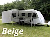 Beige schuifluifel voor caravan. Uitgevoerd in Ten Cate All-Season uitvoering. Dit voortenten- en luifeldoek is robuust en duurzaam. De micro-poreuze acrylaatcoating maakt het 100% polyester doek water- en winddicht en weerbestendig. De schuifluifel heeft 1 rechte zijwand. U kiest zelf aan welke kant u deze wand zet. U kunt deze, afhankelijk van zon en wind, zowel naar rechts als naar links schuiven.